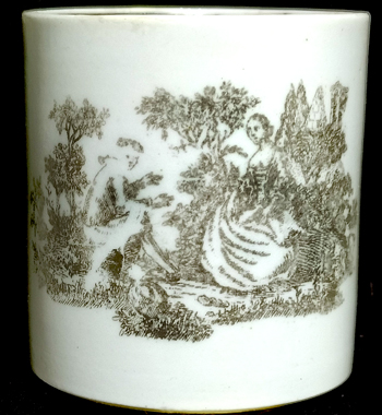 ![]() LV18 Liverpool, Christian, coffee can painted with the Long Bridge pattern c. 1765-72 |