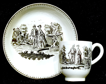 ![]() LV22 Liverpool coffee cup and saucer printed in black with 'La Cascade' and 'Serenade' by John Pennington c.1780-85 5 ins. D. (saucer) |