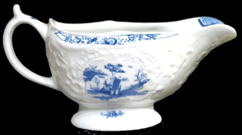 ![]() LW2 Lowestoft coffee cup & saucer painted in blue with the Robert Browne pattern of spiralling scale blue bands. c. 1780-85 5.2 ins. Cond: Fine |