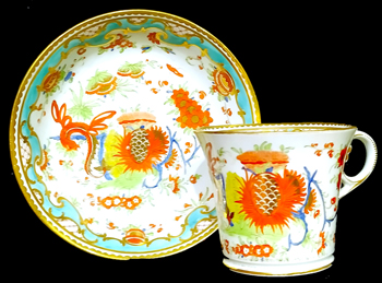 ![]() 21-R Barr Flight and Barr amusing teacup and saucer painted with Magical Birds c. 1810-14 5.75 ins. D. (saucer) Cond: Excellent Impressed BFB with crown £240 |