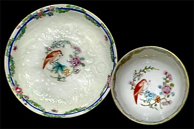 ![]() WC4 Worcester reeded coffee cup with very fine moulding stepped inwards at the base, , the loop handle with a pronounced thumbrest, painted in the famille rose & verte 2.5 ins. H. c. 1753 |