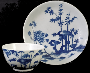 ![]() WB75 Worcester teabowl and saucer painted with the Bamboo Root pattern c. 1755-57 £650 |
