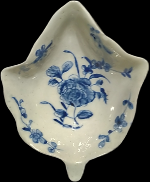 ![]() WB40 Worcester leaf shaped tray painted with a Blown Flower Leaf Tray c. 1760-65 |
