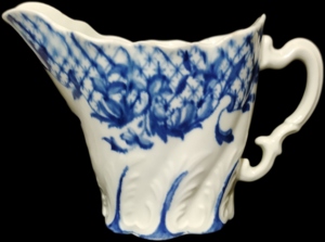 ![]() WB46 Worcester fluted sauceboat painted with the Fringe Tree pattern c. 1755-59 |